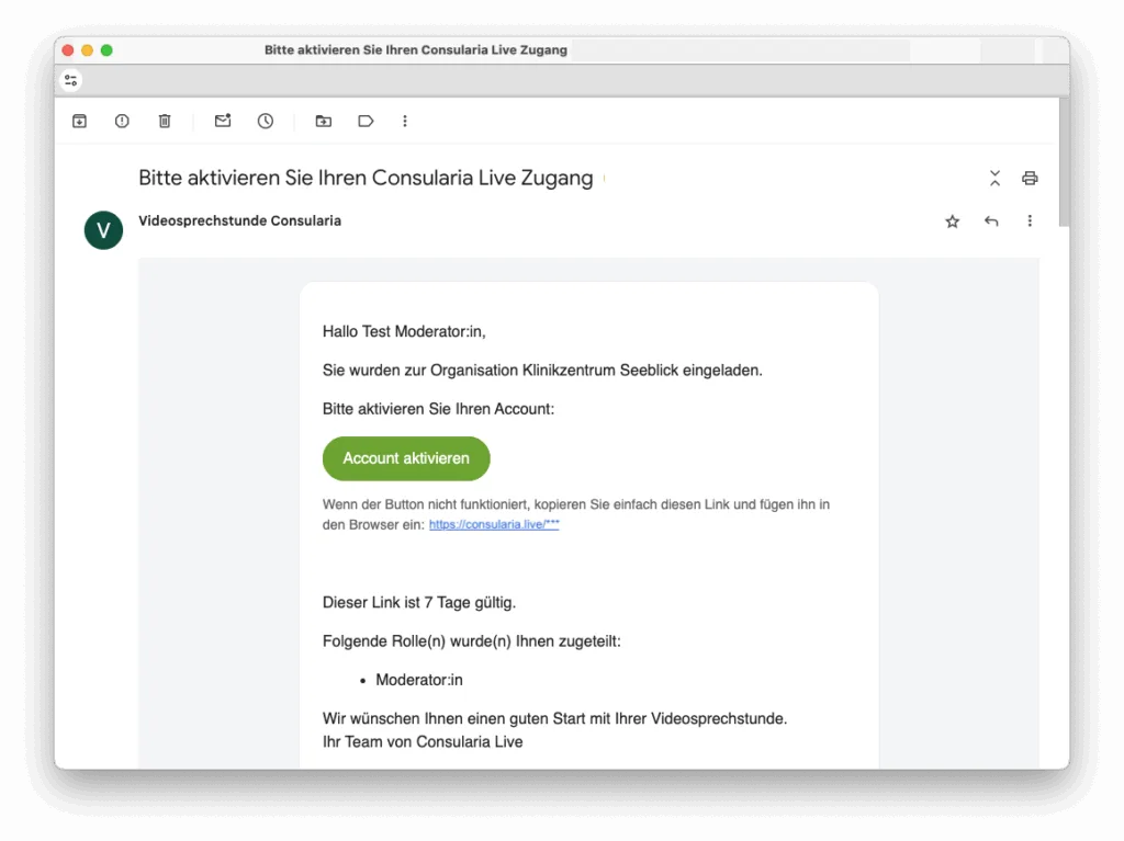 Wenn Sie von einem:einer Administrator:in eingeladen wurde, bekommen Sie eine E-Mail, um die Registrierung zu beginnen. Klicken Sie in der E-Mail auf die »Account anlegen« Schaltfläche oder kopieren Sie den Link in Ihren Browser.