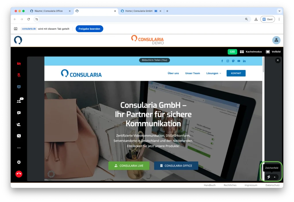 Jetzt sehen Sie innerhalb der Consularia-Videokonferenz eine Vorschau dessen, was bei Ihren Teilnehmer:innen auch angezeigt wird.